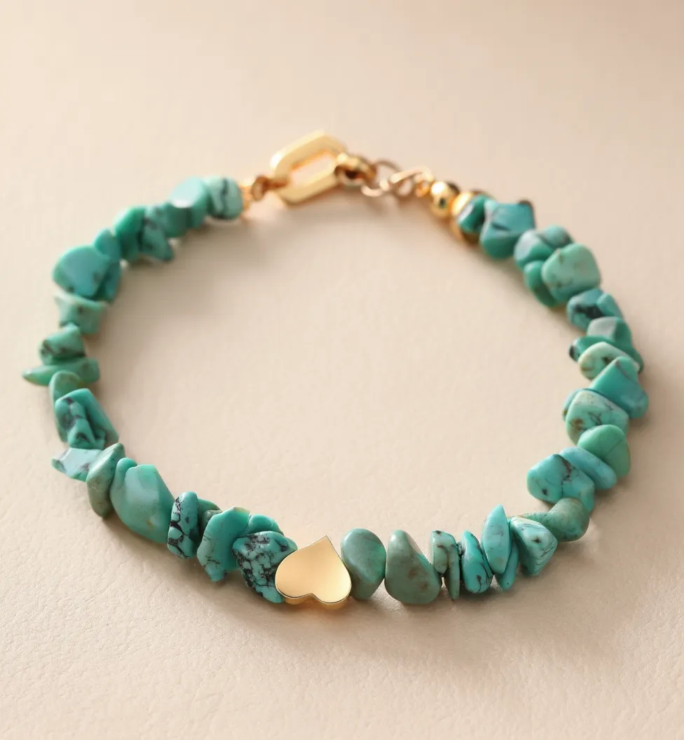 - سوار يد من كسر الاحجار يتميز السوار بوجود دلاية صغيرة على شكل قلب هيماتايت كعنصر زخرفي مركزي.