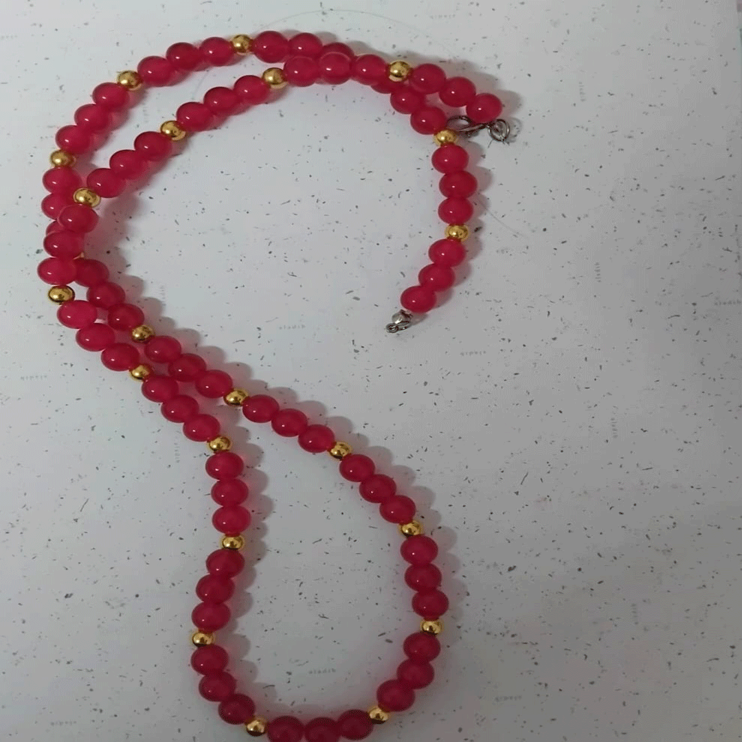 - التصميم: يتميز العقد بالتكرار المنتظم لنمط الخرز الأحمر والفاصل الذهبي، مما يعطي إحساساً بالتناسق.