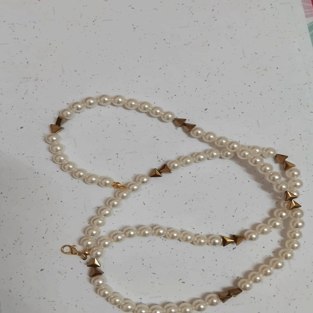 ✨ قلادة اللؤلؤ بفاصل الهرم المعدنيه