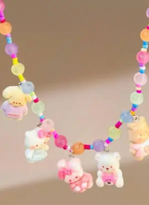 قلادة من الخرز على شكل حلوى مع تعليقات كرتونية