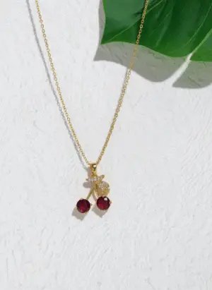 قلادة “الكرز المتلألئ” باللون الأحمر الياقوتي والذهبي.